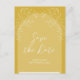 Unique yet beautiful way to send invites to friends and loved ones. This wedding invitation postcard has an arch style and features a floral design. The back of the card has your wedding announcement along with space for the recipient's name and mailing address. Shown in gold (front and back). Just change the text to suit your needs. Use the template to personalise.