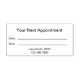 This stamp says "Your Next Appointment" at the top. There are also lines for the date and time of the appointment. There's also display text you can edit to create a custom message if desired. The bottom has display text you can edit for the dentist's name (or practice name) and phone number. All text can be edited or deleted.