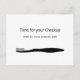 A professional dental appointment reminder business card in black and white featuring a simple toothbrush design.