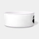 This pet bowl features a simple black paw print silhouette with a customisable text area next to it that now reads a sample text "Dog". The sample text can easily be replaced with the name of your pet, for example.