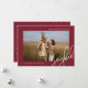 This contemporary one photo Christmas greeting card features elegant white calligraphy script typography and one photo on a trendy burgundy red background. Shop this modern holiday collection for additional stylish colours and coordinating mailing accessories.