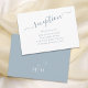 A simple wedding simple stylish wedding reception, a dusty blue calligraphy script text, an elegant guest reception event party, a modern elegant modest simplistic, with minimalist minimal fancy swirly font, and simple classy typography font, for guest details and more info, a basic plain clean minimal, a classic stylish trendy enclosure card, a simple wedding reception enclosure