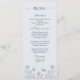 Unique simple wedding menu card featuring romantic and elegant dusty blue flowers on light blue background