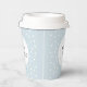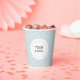 This minimal paper cup features a simple logo and brush confetti pattern on a dusty blue grey background. Add your logo and customise the text with your information. You can use this personalised cup at your business place, shops, company event or, etc.