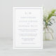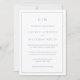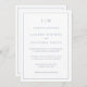 Simple all-in-one Wedding Invitation featuring a modern yet elegant design with your two letter monogram at the top and your details surrounded by a thin border. All design elements are dusty blue over a white background and may be changed to any colour you wish in the design editing tool. The backside has all your wedding details, eliminating the need for a separate enclosure card, making this a budget friendly wedding invitation suite. A chic and stylish design that is great for a minimalist couple.