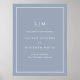 Simple dusty blue welcome wedding sign poster featuring a modern yet elegant design with "welcome to our wedding" along with your monogram, names and wedding date. The text and colour may be changed in the design editing tool. A chic and stylish design that is great for a minimalist couple.