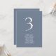 Simple Dusty Blue Table Number Seating Chart Card. Edit you number for each table and add to your cart separately. Minimalist style. Same design is on both sides, use for a hanging display so guests can find their seat or display on each table. Easily personalise the table number and your guest names. The same design is on both sides and will update simultaneously as you change the words to your own.