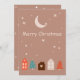 Simple Merry Christmas card featuring cute houses and Christmas trees available on a two warm earth tones colour background. The classic yet delicate font gives it an earthy vintage look while keeping it cute and simple.
