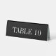 Simple easy to read table tent sign with table numbers. Perfect for wedding, office, school, gathering, company, reunion and more. Easy black and white template with elegant typography. Custom background colour and text. Available in different sizes. Helps people find there tables and seats. Customisable party supplies. Help with seating.