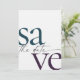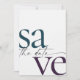 These 5" x 7" save the date cards feature a minimalist design in eggplant purple, teal and dark grey letters with placeholders on the back for the engaged couple names, wedding date, and venue information and your favourite photo!