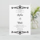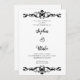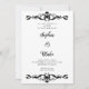 The predominantly white background provides a clean and classic canvas for the beautiful black scroll work on the top and bottom of the stationery. The scroll work adds a touch of vintage charm and Art Deco style to the invitation.