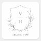 Monogrammed initials framed by elegant crest and hand illustrated botanical leaves in black and white, simple and luxury. Great thank you favour stickers for modern classic wedding, simple formal wedding, elegant botanical garden wedding.
