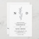 Minimalist black and white wedding invitation, with your monogrammed initials and hand illustrated botanical leaves on the top