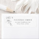 Minimalist return address sticker with rustic hand illustrated botanical leaves and modern classic font in black and white, simple, elegant and professional.