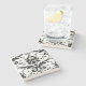 The coasters are gorgeous, a quality feel and heavy weight. They look like a precious archeological find. A rustic stone juxtaposed with a modern floral black and white print. I like the way the print goes slightly imperfect on the cut stone edges giving them a kind-of natural beauty.