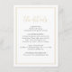 Romantic wedding details card feature stylish script and elegant font event details in gold colour, modern and simple, great for minimalist formal wedding, traditional classic wedding, modern simple wedding.