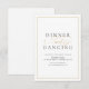 Romantic dinner and dancing reception card feature stylish script and elegant font event details in gold and black, modern and simple, great for minimalist formal wedding, traditional classic wedding, modern simple wedding.