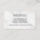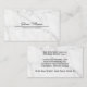 This business card is simple, elegant, sophisticated, and chic. It features a classy and professional design with your name in modern script lettering on a background of white marble rock or stone. The font is lovely and feminine, and the whole presentation exudes style and class. Name and tag line on the front with contact info on the back.