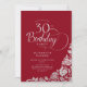 Simple Elegant 30th Birthday Red Silver Roses Invitation