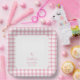 Simple Elegant Baby Pink Gingham Girl Baby Shower Paper Plate