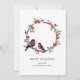Simple Elegant Beautiful Bird Holly Berry Wreath Holiday Card