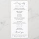 Black and white typography wedding program featuring the words, "the wedding of" with swashes, a heart at the end and dotting the "i". Below are your names, city, state and date. The front has your order of ceremony and the back has your wedding party and thank you message.