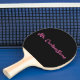 This minimalist ping pong paddle design features a black coloured background and a handwriting style hot pink coloured name that can be personalised. It could perhaps make a great gift for somebody whose favourite colours are black and hot pink.