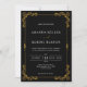 Simple Elegant Black & Gold Floral Wedding Invitation