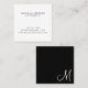 Modern and minimalist square business card with your contact info in black over a white background. The backside has your single initial monogram in the lower right hand corner, in white script over a black background. This minimal design works great for a makeup artist, hair stylist, interior designer, event planner and more.