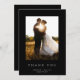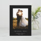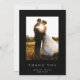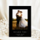 Extend your appreciation with the Simple Elegant Black Thank You Cards. Mirroring the sophistication of the wedding invitation, these cards feature a black background, classic serif lettering, a personalised photo of the couple and custom names for a stylish expression of gratitude.