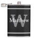 Elegant black and white monogram flask. Perfect for birthday, Father's day. Personalise with your name and initials.