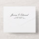 A combination of an elegant script typography with a clean layout. The timeless design ensures that it will complement any wedding theme or colour scheme