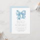 Simple Watercolor Blue Bow Baby Shower Invitation with Elegant Script Typography.