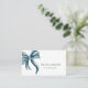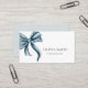 Simple and elegant business card with a blue bow on one side and modern typography. Illustrated and designed by Patricia Alvarez.