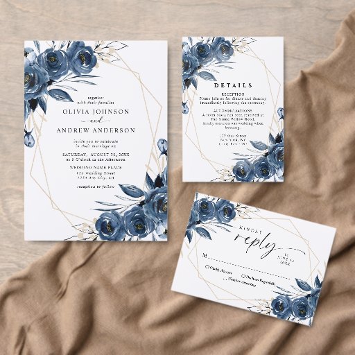 Elegant Navy Blue Geometric Floral WeddingDesigned by Halyna Tymoshenko