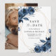 Share your exciting news with this elegant navy blue and silver watercolor floral photo Save the Date card. Featuring a beautiful floral botanical design with soft watercolor details and romantic calligraphy script, this card is the perfect blend of modern style and timeless elegance.