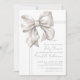 Available as a printed invitation or a downloadable digital invite that can be sent via email or printed locally. Simple Watercolor Ivory Bow Baby Shower Invitation Elegant Script Typography.