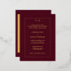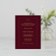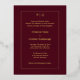 Touch of foil highlights monogram and couple's names on this simple, yet elegant traditional invitation. Lettering in light gold colour is matte on the burgundy wine background. Keeping it minimal, with typography providing visual interest.