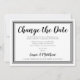 Simple and elegant black and white wedding "Change the Date" postponement announcement by Holiday Hearts Designs.