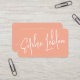A stylish and professional peach colour contact card with fields for name (large script font-style), profession (skincare specialist or any other occupation), contact number, email and address... for a stylish first impression