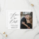Elegant chic typography photo wedding save the date card in simple black and white with a modern calligraphy script. +++++++++++ Suitable for any season classy modern theme weddings.