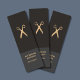 Elegant business card template with dark gray background and faux gold scissor pattern. Modern and chic design. Perfect for hairstylist, hairdresser, barber.
