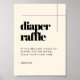 Diaper Raffle Game baby Shower sign. Minimalist yet striking: adopt this slightly retro typographic design for your Baby Shower stationery, with an elegant cream colour. Fully customisable text, colours and backgrounds.