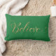 Simple Elegant Christmas Believe Gold Green Lumbar Cushion