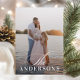 Also available in black text! Your Big Name Calligraphy Christmas Photo Card. This is beautiful typography on a full bleed one card photo with white lettering. It includes a grey overlay to darken the area behind the white text photos behind the text.