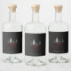 Transform your homemade spirits, wine, or special liquor gifts with these chic, custom holiday bottle labels. The design features a striking charcoal-black background, contrasting with simple white outlines of pine trees and delicate snow dots, creating a modern, wintry forest scene.