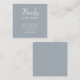 Featuring elegant white script and serif fonts set against a smooth, dusty blue background, this card maintains simple and timeless aesthetic.