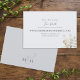 A simple wedding RSVP template with a modern wedding Website layout. This design is a great way to direct your guests to your wedding website. With botanical green and gold greenery foliage leaves/ The back features a grey ampersand and bride and groom initial monograms.