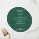 Simple Elegant Emerald Green Round Wedding Dinner Menu