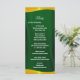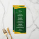 This elegant emerald green and gold wedding menu is perfect for your big day. This menu has a lovely green silk and gold colour scheme that is ideal for a bride who wants a lovely green look. It includes everything you'll need for your reception, including your first course, second course, entree, and dessert. You can customise it by including your favourite items.